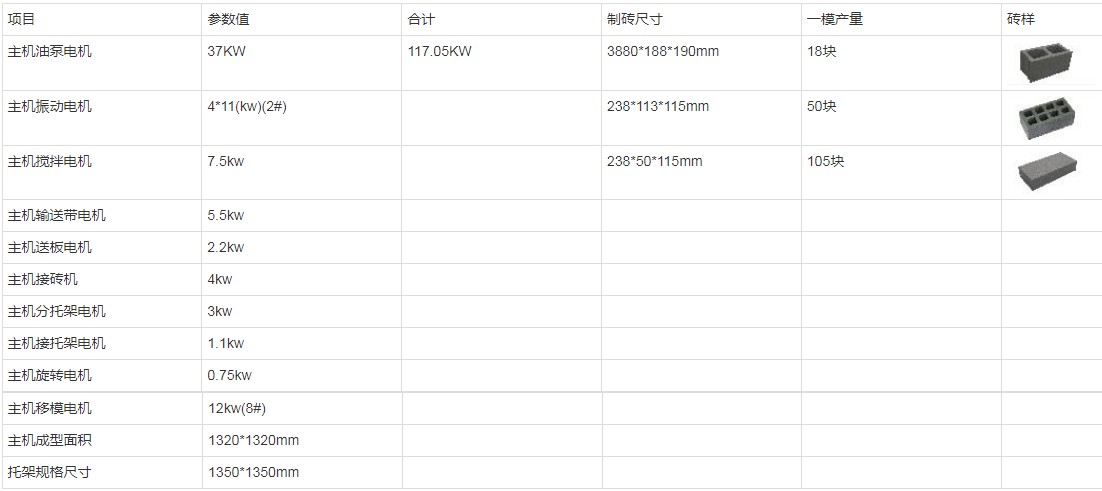 二、YH-MT18 免托板磚機技術參數表: